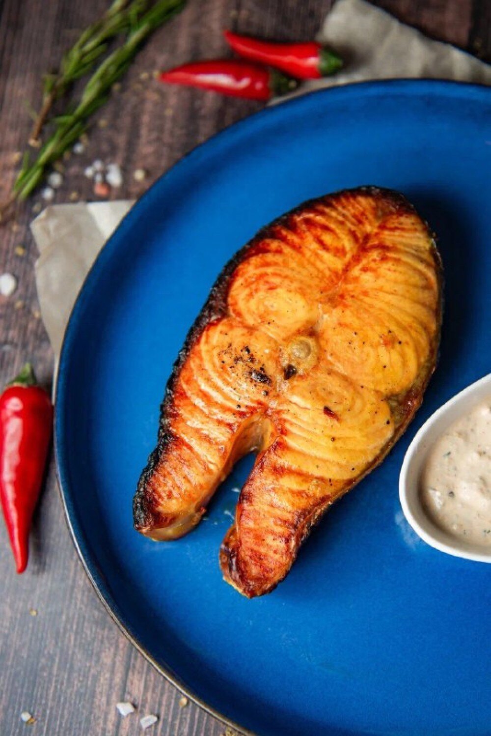 Подаётся с чесночным соусом и лимоном